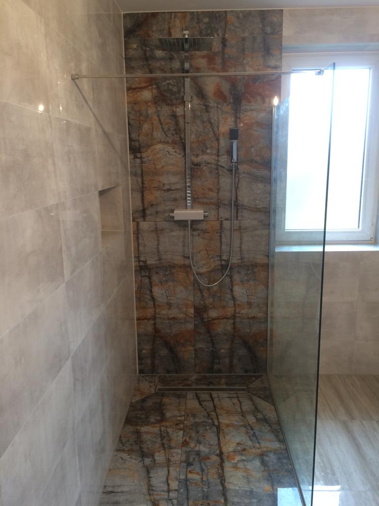 Kompleksowe remonty łazienek: kafelkowanie, odpływy liniowe, biały montaż i niezbędne wykończenia.